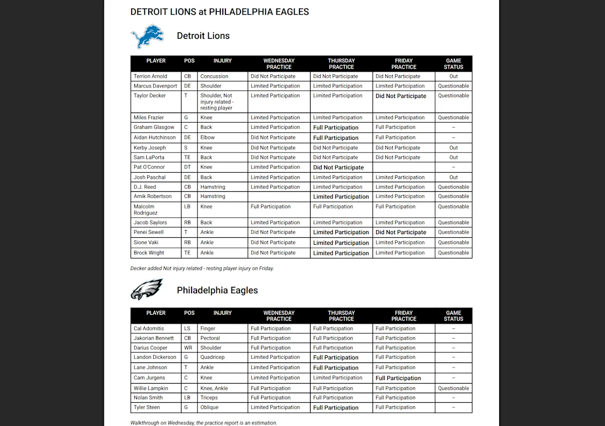 Τελική αναφορά τραυματισμού Lions και ιατρική ανάλυση για την Εβδομάδα 11 vs Eagles