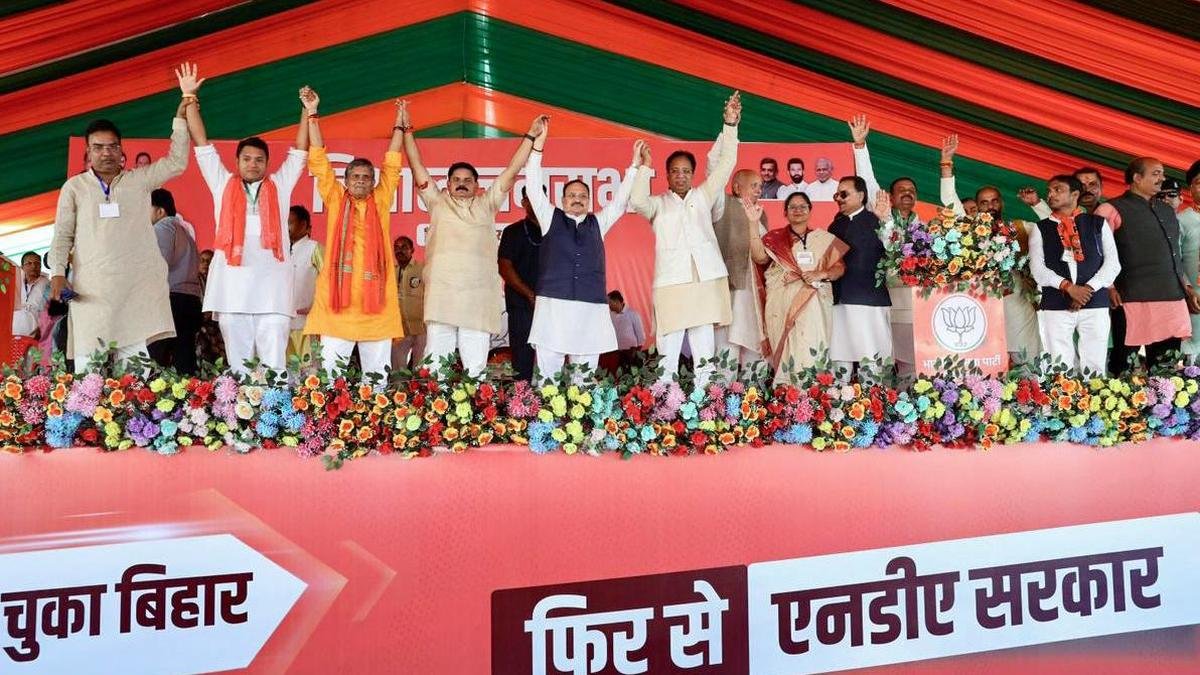 Ο υπουργός Ένωσης Τζαγκάτ Πράκας Νάνττα ενώνει τα χέρια με άλλους ηγέτες κατά τη διάρκεια μιας δημόσιας συνάντησης για τις εκλογές για τη συνέλευση του Μπιχάρ, στο East Champaran την Τετάρτη. | Φωτογραφία: Ο εθνικός πρόεδρος της ANI BJP, JP Nadda, την Τετάρτη (5 Νοεμβρίου 2025) είπε ότι “το NDA αντιπροσωπεύει τη HIRA” και έδωσε τα εύσημα στον πρωθυπουργό Narendra Modi και τον επικεφαλής υπουργό του Bihar Nitish Kumar για την ταχεία ανάπτυξη της πολιτείας. Απευθυνόμενος στις δημόσιες συγκεντρώσεις στο Bettiah και το Motihari, ο Mr. Διαδίκτυο, R για τους Σιδηροδρόμους και Α για το Αεροδρόμιο Όλες αυτές οι εξελίξεις έχουν λάβει χώρα στο Μπιχάρ και θα συνεχιστούν». Ισχυρίστηκε ότι οι εκλογές δεν αφορούσαν απλώς την κατάκτηση εδρών, αλλά την παροχή σταθερότητας και την προώθηση της ανάπτυξης του Μπιχάρ.” εποχής», είπε. Ο Nadda περιέγραψε το RJD ως ένα κόμμα “Rangdari (εκβιασμός), Jungle Raj (αναρχία) και Dadagiri (εκφοβισμός)” και κατηγόρησε τους ηγέτες του, συμπεριλαμβανομένων των κ. Lalu, κας Rabri, κ. Tejashwi και Misa Bharti, ότι αποφυλακίστηκαν με εγγύηση. Υπενθυμίζοντας το “lathi pilaeglu” του 2003. θέσεις εργασίας ή διασφάλιση της συνολικής ανάπτυξης. Τονίζοντας τις κυβερνητικές πρωτοβουλίες πρόνοιας, ο κ. Nadda είπε: “Υπό το Pradhan Mantri Garib Kalyan Anna Yojana, περίπου 8,70 crore φτωχοί λαμβάνουν δωρεάν μερίδες και περίπου 5,5 crore έχουν κάλυψη υγείας έως 5 lakh ₹ υπό τον Ayushman Bharat.” Ανέφερε επίσης τα βήματα που έγιναν για την προώθηση του Shahi Litchi του Muzaffarpur διεθνώς και τις πρωτοβουλίες για αλεπούδες σε Darbhanga και Mithila. Δημοσιεύθηκε – 06 Νοεμβρίου 2025 12:03 π.μ. IST (ετικέτες Προς Μετάφραση) Συλλαλητήριο Nadda Bettiah