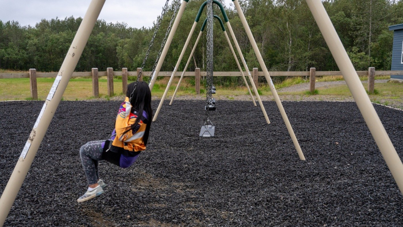 Aniak students play outside on the playground.